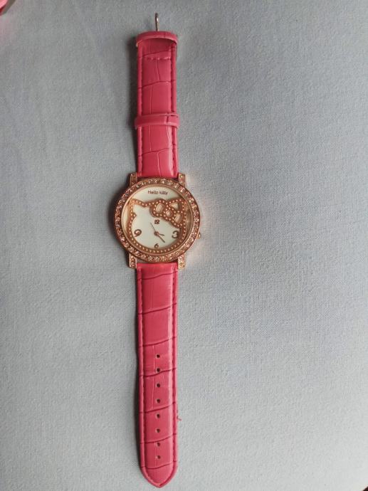Hello Kitty sat s efektnim detaljima, cirkonima i divnim rozim remenom, nenošen, potrebna baterija.
