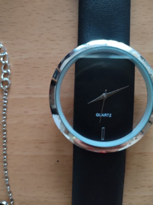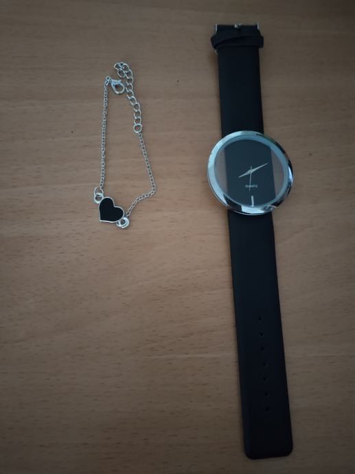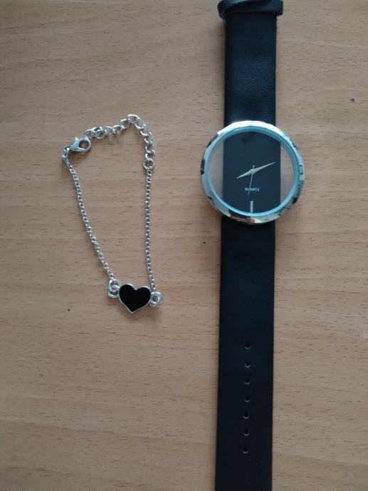 Prodajem prekrasan, novi sat sa crnim remenom! Promjer sata je cca 4,5 cm, a max duljina narukvice sa crnim srčekom je 20, a min. 16cm