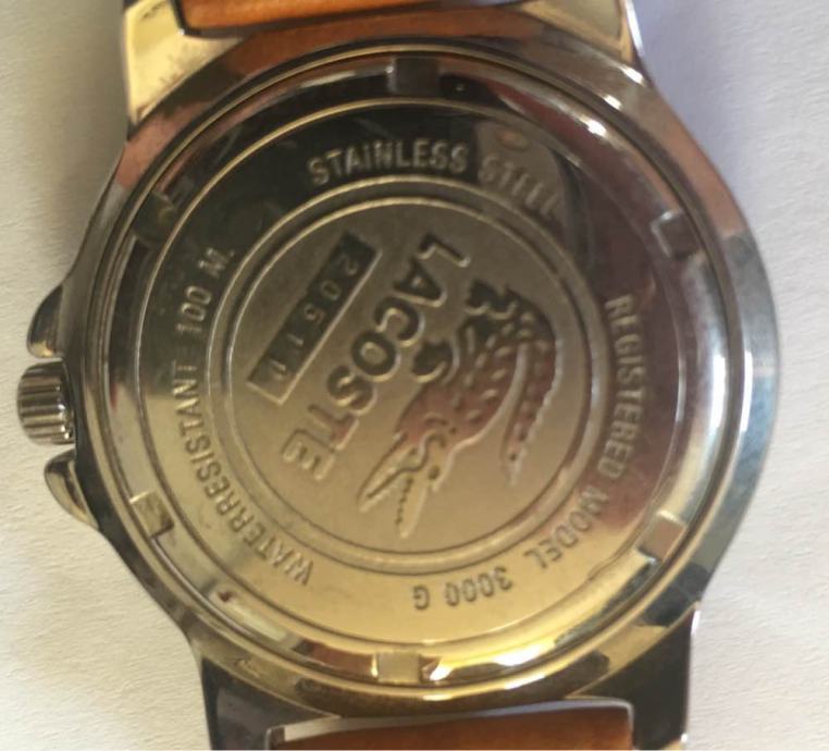 Uščuvani Lacoste sat (žuti) sa ETA quarz mehanizmom. Promjer 37.5mm.