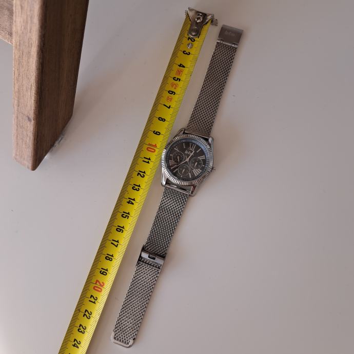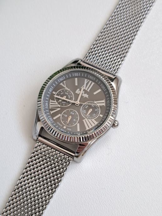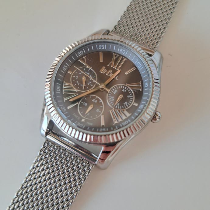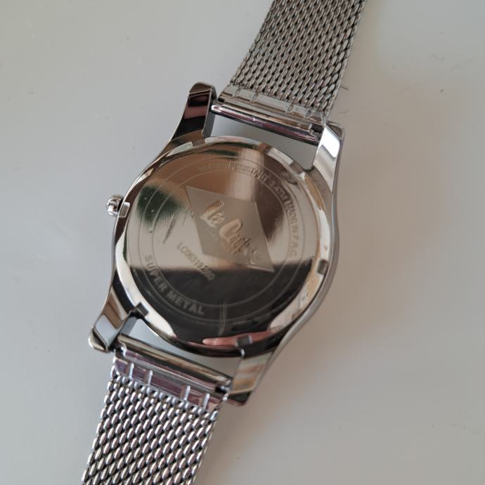 Lee Cooper ženski sat u odličnom stanju, nošen je povremeno i potpuno je ispravan. Narukvica sata je izrađena od nehrđajućeg čelika, a kućište od super metala. Manja površinska ogrebotina na stražnjoj strani sata (prikazano na jednoj od fotografija). Vodootpornost 3ATM