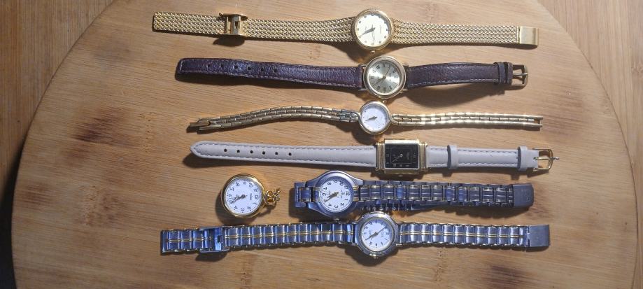 Lot od 7 raznih baterijskih satova isprabnih i u dobrom stanju. Svi satovi dobili nove baterije,prva četri imaju svoje orginalne narukvice kozni svjetli novi drugi vrlo dobar. Na malom fali lancic