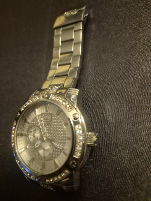 Prodajem malo nošeni ženski sat marke Marc Ecko s metalnom narukvicom i ukrašenim kristalima oko brojčanika. Elegantni srebrni sat ima višenamjenski brojčanik s dodatnim funkcijama i prepoznatljivim dizajnom. Sat je u odličnom stanju i idealan je kao modni dodatak za svaku prigodu.