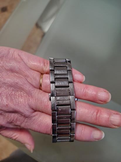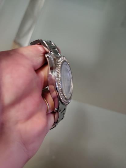 Sat je slabo nošen, očuvan, sitne recke nošenja, cirkoni su svi na broju i sjajni. Stavljena nova baterija. Dodatke karike za proširenje.