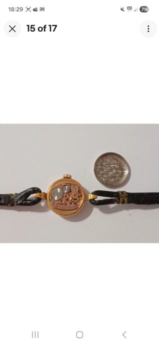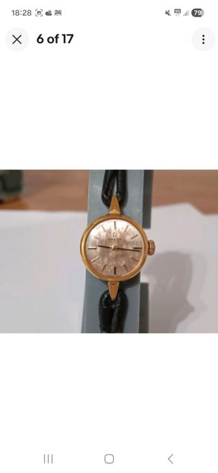 ŽENSKI POZLAĆENI OMEGA SAT ZA TRČANJE IZ 1962. GODINE KUĆIŠTE S POZLAĆENIM ČELIČNIM ZADNJIM DIJELOM I POTPISOM OMEGA JE U DOBROM STANJU. IMA OGREBOTINE, OZNAKE I TRAGOVE TROŠENJA. DIMJER JE PRIBLIŽNO 17 MM BEZ KRUNE. 29 MM OD RUČICE DO RUČICE. SREBRNI BROJČANIK SA ZLATNIM/CRNIM MARKERIMA I KAZALJKAMA JE U ORIGINALNOM STANJU. ČISTA PROZIRNA LEĆA. ČIST, SVJETLI OMEGA MEHANIZAM SE NAVIJA I DOBRO RADI. PREPORUČUJEM ČIŠĆENJE I SERVISIRANJE JER NIJE SERVISIRAN DUGO GODINA. STARI KOŽNI REMEN ZA KOKTELE. DOBAR ORIGINALNI ŽENSKI OMEGA.