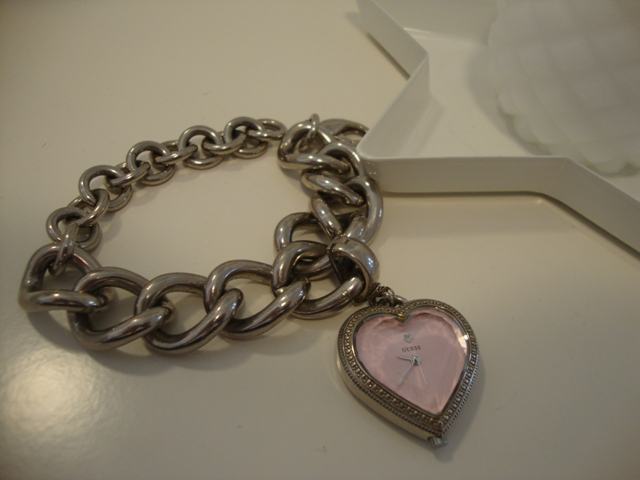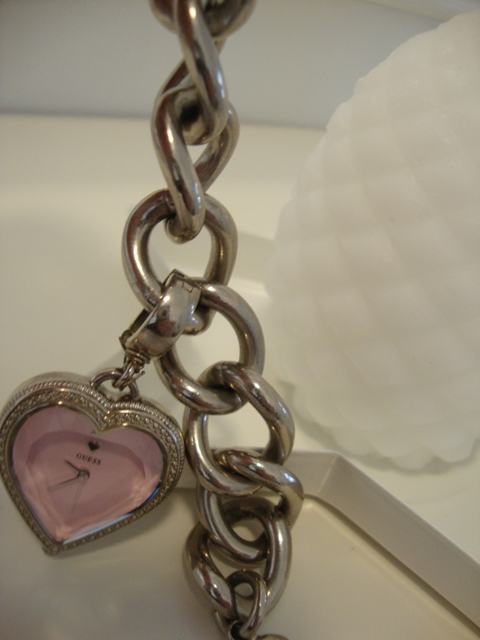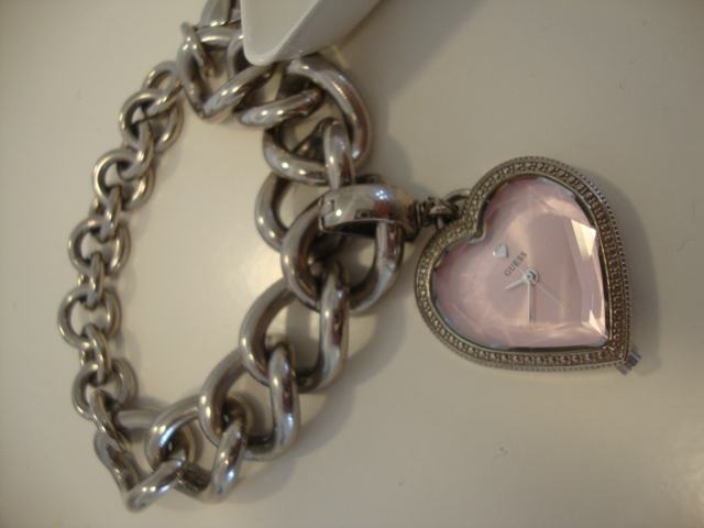 Sat je bez baterije. Efektan na ruci, u obliku srca - privjeska. narukvica je podesiva. Kratko je nošen.