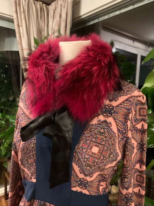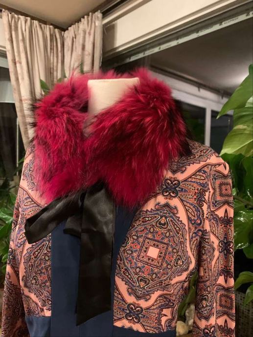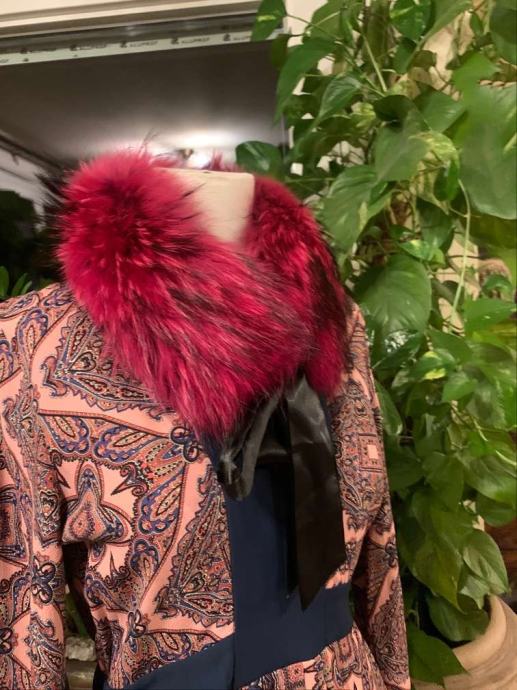 Luksuzni ovratnik izrađen od prirodnog krzna lisice je topla i podstavljen svilom.