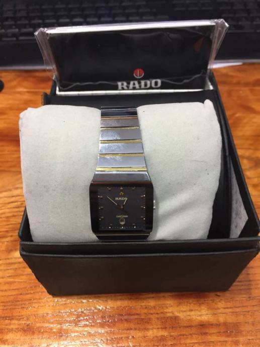 Prodajemo rabljeni ženski Rado sat. Stanje 9/10, površni, jedva vidljivi tragovi korištenja. Sat je uredan i ispravan, dolazi u originalnoj kutiji s papirima.