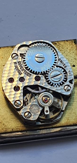 Ispravan pozlaćeni starinski šivcarski ženski sat dimenzija 2,7cm x 2,1cm vrlo lijeoo icuvan staklo je u hornjem dijelu malo mutnije 17 rubisa