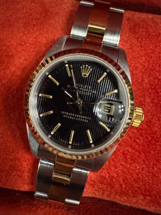 Prodajem ženski Rolex Lady Datejust 26, ref. 69173 iz 1996. godine sa safirnim staklom i rijetkim tapestry dialom. Sat dolazi u original kutiji bez papira.