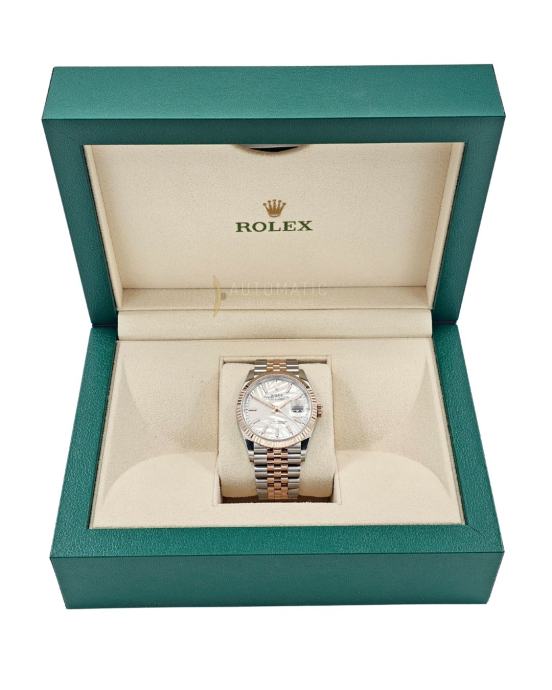 Kućište prečnika 36 mm izrađeno je od nerđajućeg čelika, idealnog balansa između klasičnih proporcija i savremenog stila. Sat pokreće Rolex automatski mehanizam, koji obezbeđuje vrhunsku preciznost, pouzdanost i dug vek trajanja. Safirno staklo sa Cyclops lupom iznad datuma dodatno naglašava funkcionalnost i prepoznatljiv Rolex dizajn.