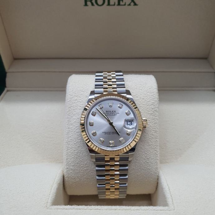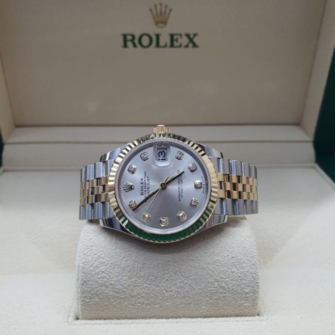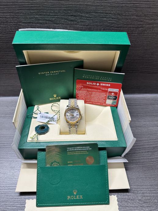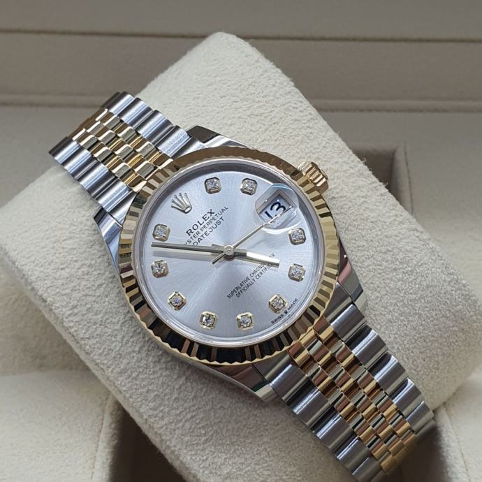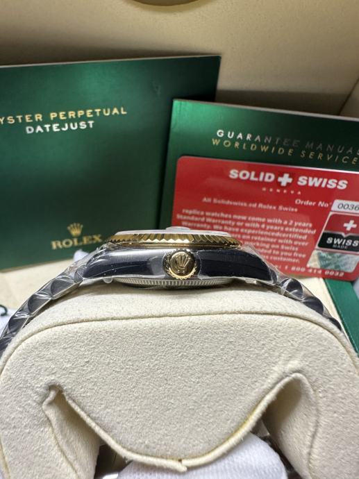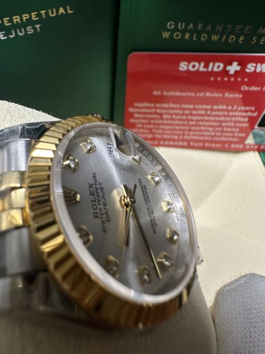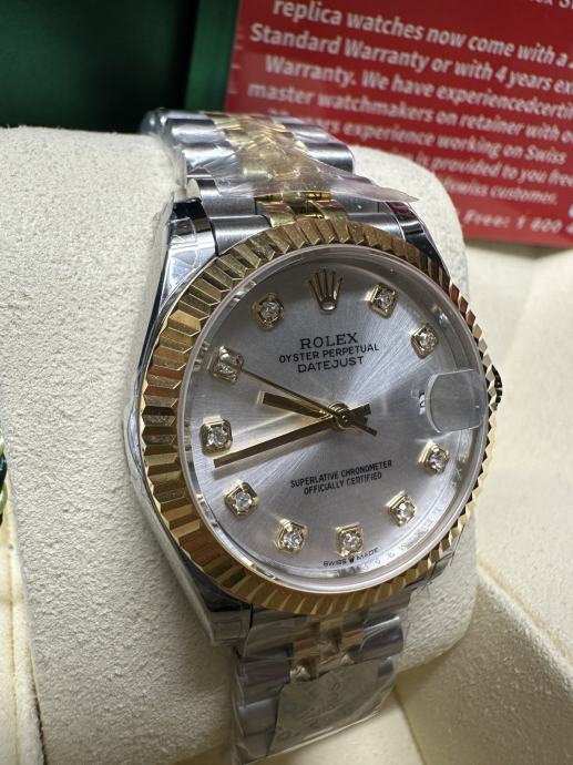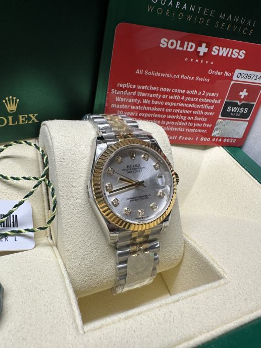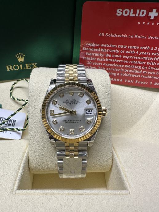 Prodajem novi upakiran sat Rolex DATEJUST LADY 31mm BICOLOUR (SILVER DIAMONDS DIAL) sa ETA 2236 automatskim mehanizmom. U pitanju je clon SOLID SWISS i ne replika 3A!!! Verzija sata je SOLID SWISS trenutno najbolji moguči kvalitet na tržištu, sat se proizvodi u Švicarskoj i dolazi direktno iz fabrike SOLID SWISS!