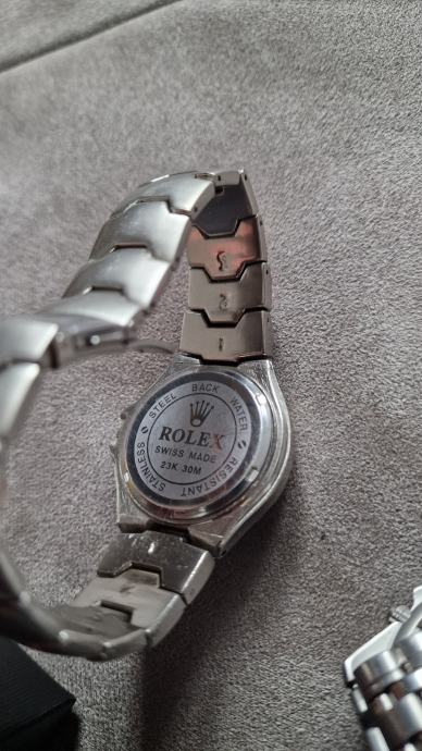 Prodajem malo nošenu repliku Rolex Oyster Perpetual ženskog sata s elegantnim srebrnim kućištem i narukvicom. Sat ima bijeli brojčanik s klasičnim Rolex oznakama i kvarcni mehanizam za precizno mjerenje vremena. Idealan modni dodatak za svaku priliku koji izgleda luksuzno i profinjeno. Oznaka je i na remenu.