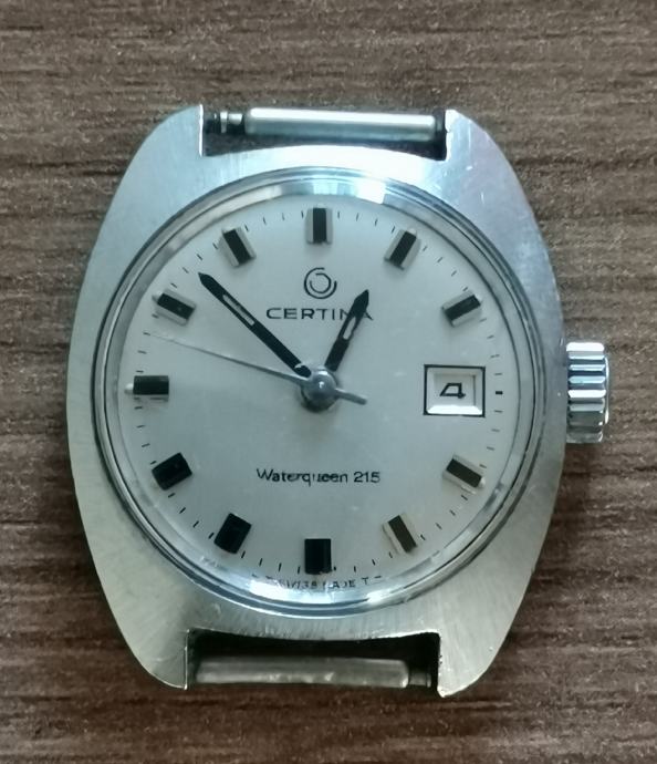 VIntage kvalitetni ženski sat "CERTINA" WATERQUEEN 215..call 17-251...f=19800 A/h..rezerva snage 44 h...1980.-te godine..full čelično kućište promjera 24,2 mm mm bez krunice i lugova...originalna potpisana krunica..poklopac na navoj..staklo bez ogrebotina...kvalitetni kožni retro ručno rađeni remen,