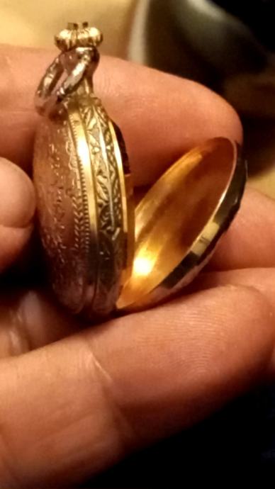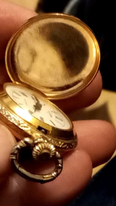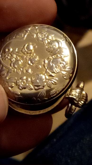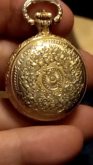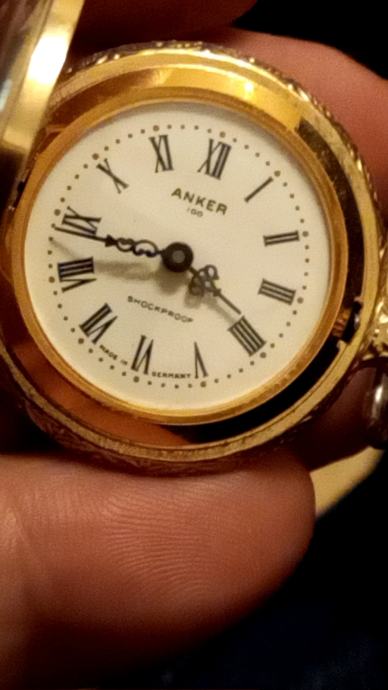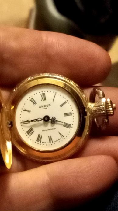 Prodajem elegantni džepni sat marke Anker u zlatnoj boji s rimskim brojkama na bijeloj podlozi. Sat je malo nošen i dolazi s prekrasno ukrašenim kućištem na kojem su reljefni cvjetni motivi. Otvarajući mehanizam je u odličnom stanju, savršen za kolekcionare ili ljubitelje vintage modnih dodataka.