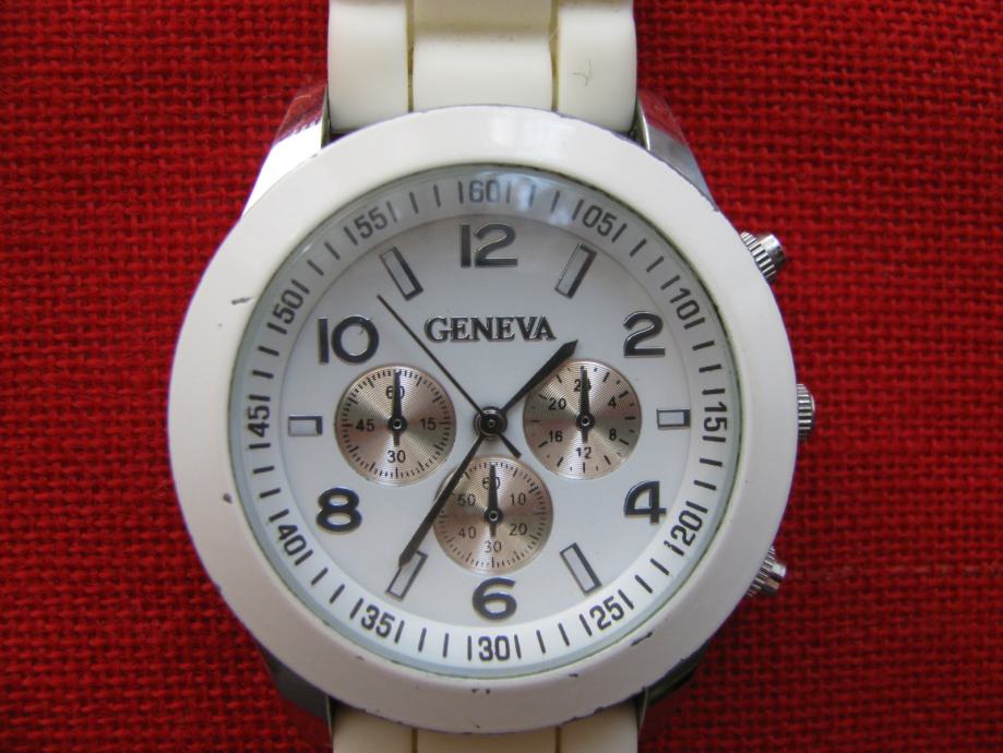 Očuvan, par sitnih točkica na bijelom rubu kučišta., bijele silikonske narukvice duljine 23,5 c.