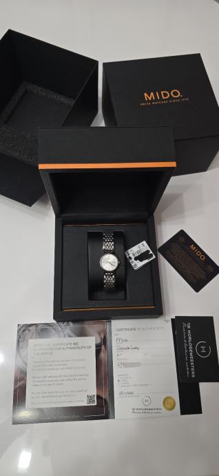 Prodajem potpuno novi ženski sat renomirane švicarske marke MIDO s originalnom etiketom i pratećim certifikatom te garancijom. Elegantan dizajn sa srebrnom narukvicom i bijelom brojčanicom savršen je za svaku prigodu. Izrađen od kvalitetnog nehrđajućeg čelika s prepoznatljivim MIDO detaljima koji ističu njegovu sofisticiranost.