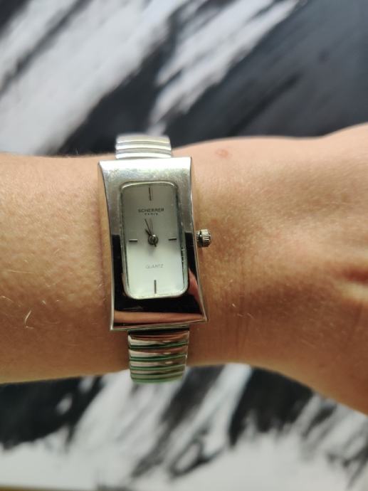 Dizajnerski sat Scherrer, Paris, nova baterija, ispravan i točan, dimenzije 33x20 sa elastičnom narukvicom. Dostava po dogovoru, o Vašem trošku.