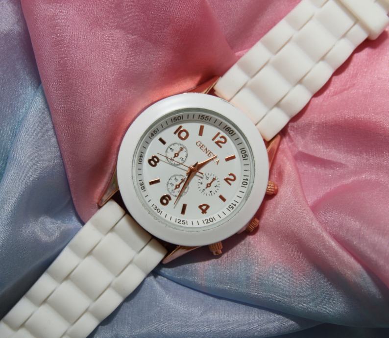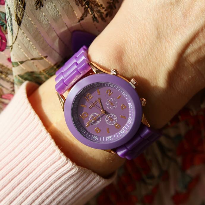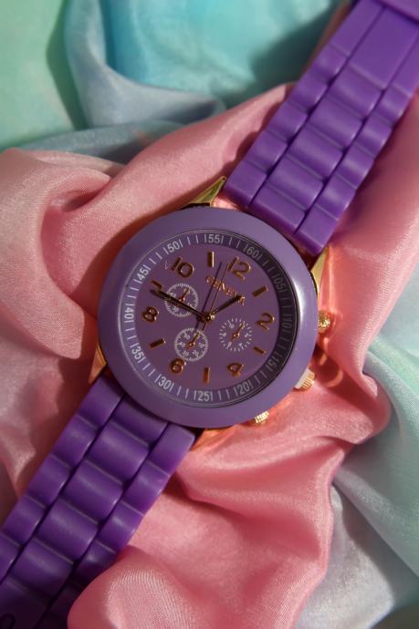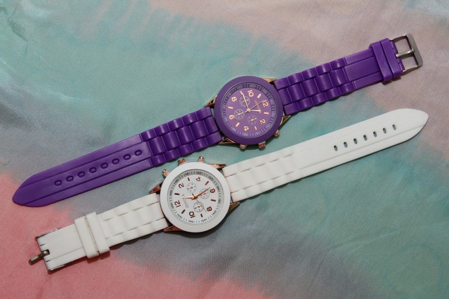 NOVI KVARCNI SATOVI, SILIKONSKI, IMAM PO JEDAN KOMAD U BIJELOJ I LJUBIČASTOJ BOJI. NENOŠENO.