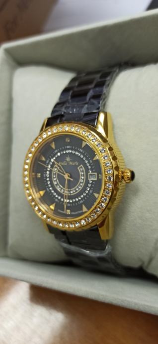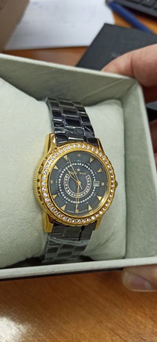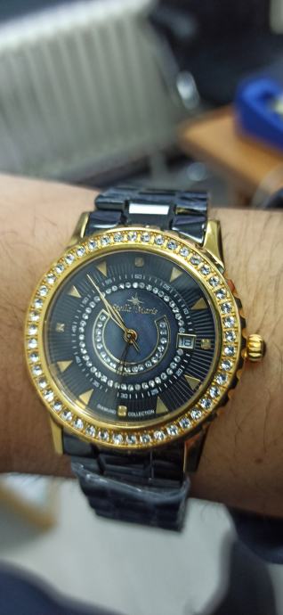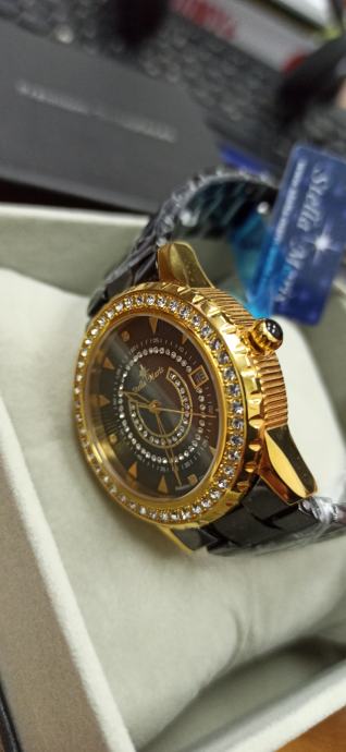 Prekrasan sat s dijamantima i Swarovski kristalima. Kvalitetno kućište Safirno staklo i narukvica daju ovom satu trajnost a dijamanti i lijep cifer ekskluzivnost. Plaćen 635 eura.