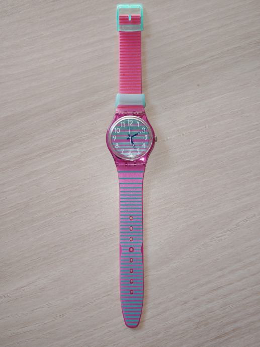 Prodajem malo nošeni Swatch sat u atraktivnoj ružičastoj boji s prugastim detaljima. Ženski model s prozirnim kućištem idealan je modni dodatak za svaku priliku. Sat je u odličnom stanju i spreman za novog vlasnika.