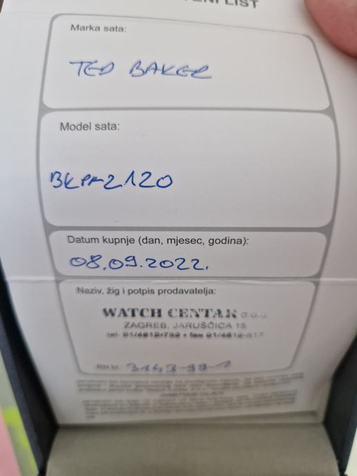 TED BAKER, ŽENSKI SAT, KAO NOV, CERTIFIKAT