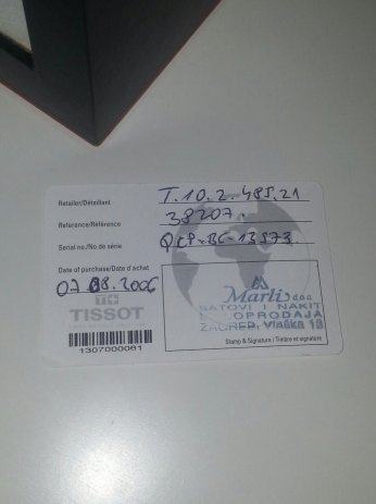 Sat je kupljen 2006. kod ovlaštenog zastupnika. Ima certifikaciju, garanciju i račun. Malo je nošen i čuvan je u kutiji. Moguća zamjena za satove sljedećih marki- Omega, Tag Heuer, IWC Schaffhausen, Cartier, Tissot, uz moju nadoplatu.