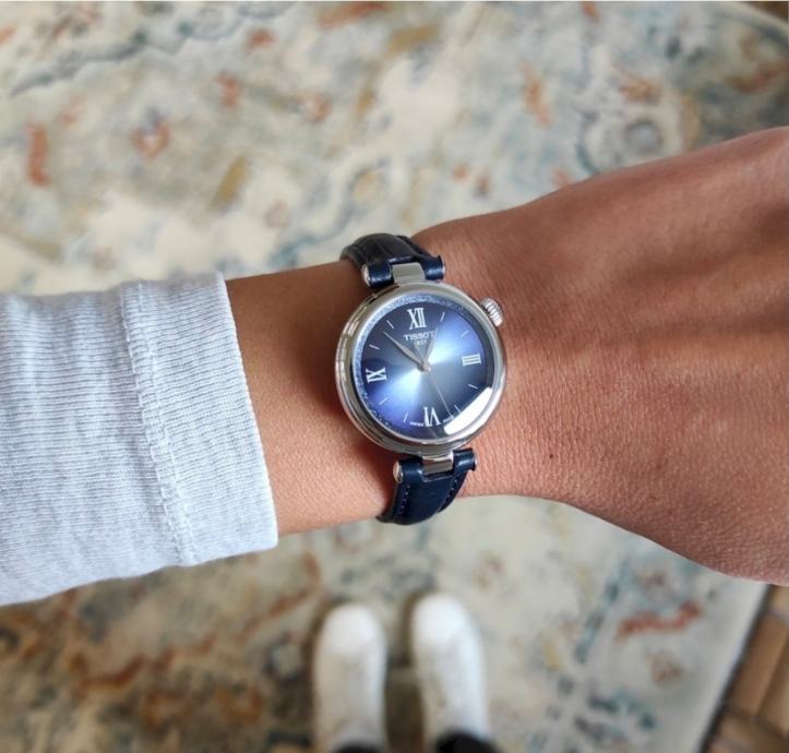 Novi nenošeni ženski sat Tissot Desir,kožni remen tamno plave boje. Račun. Original kutija. Stanje 10/10
