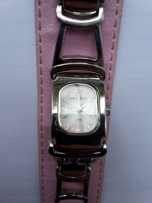 Ručni analogni sat kupljen u Funky fish-u. Od nehrđajućeg čelika, vodootporan. Jednom nošen.