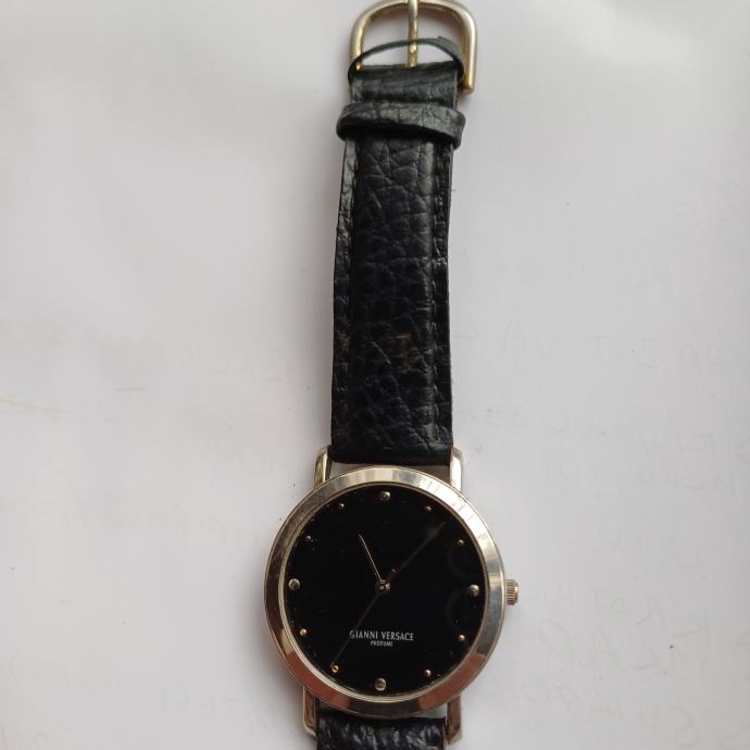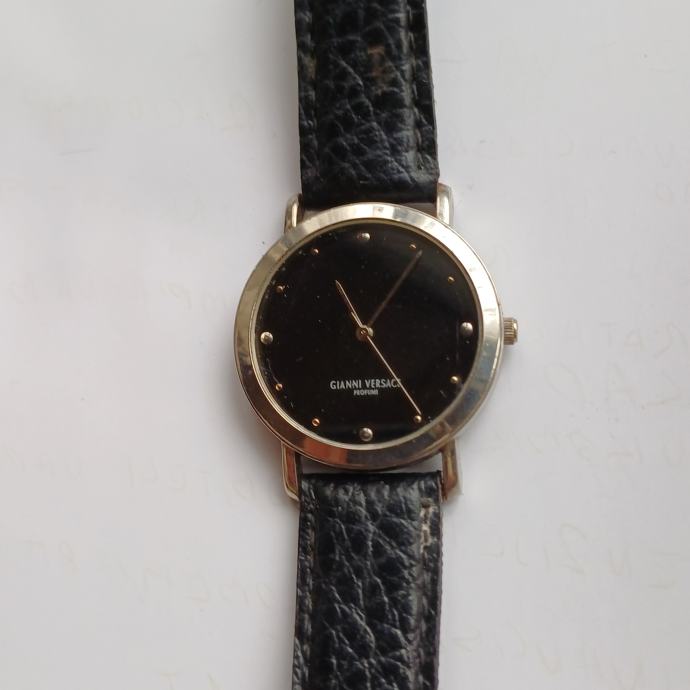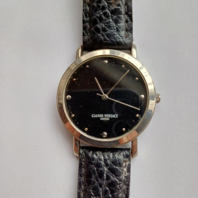Gianni Versace sat sa kožnim remenom u ok stanju ispravan i točan..na staklu mala ogrebotina koja se baš ne primjećuje...šaljem poštom po potrebi..