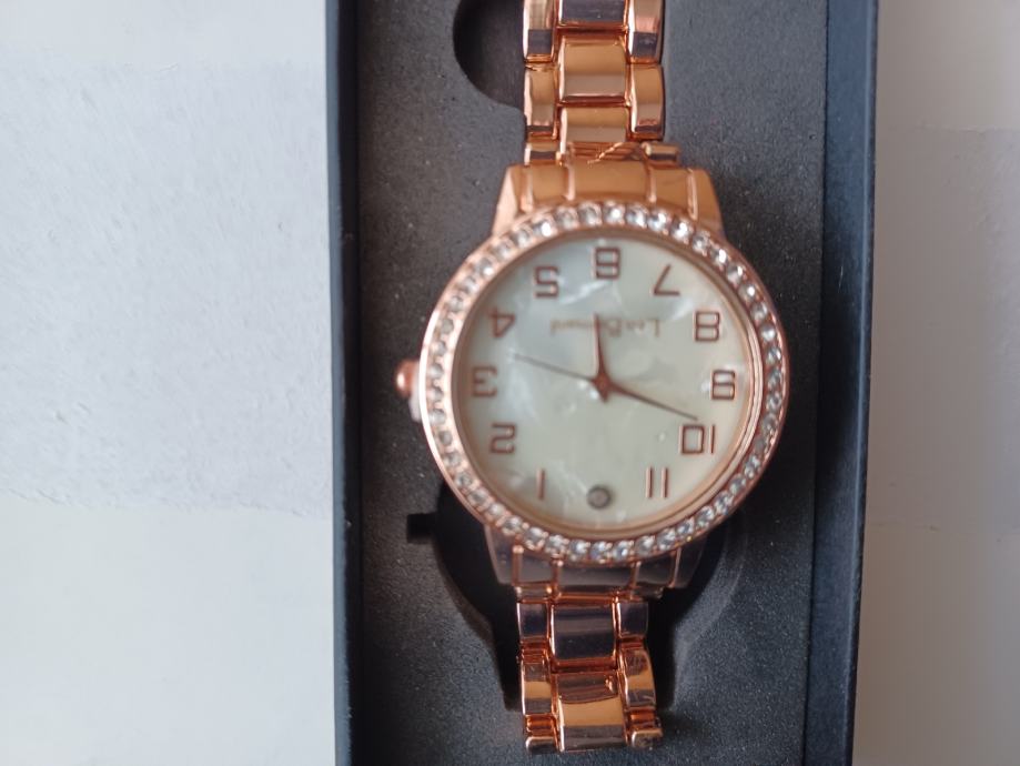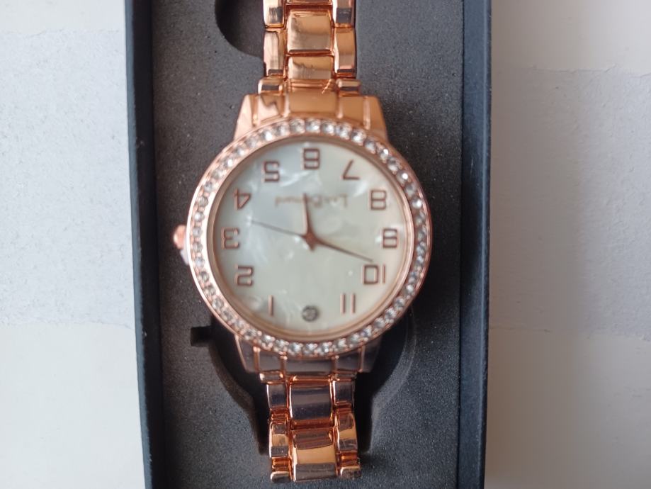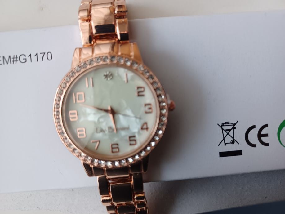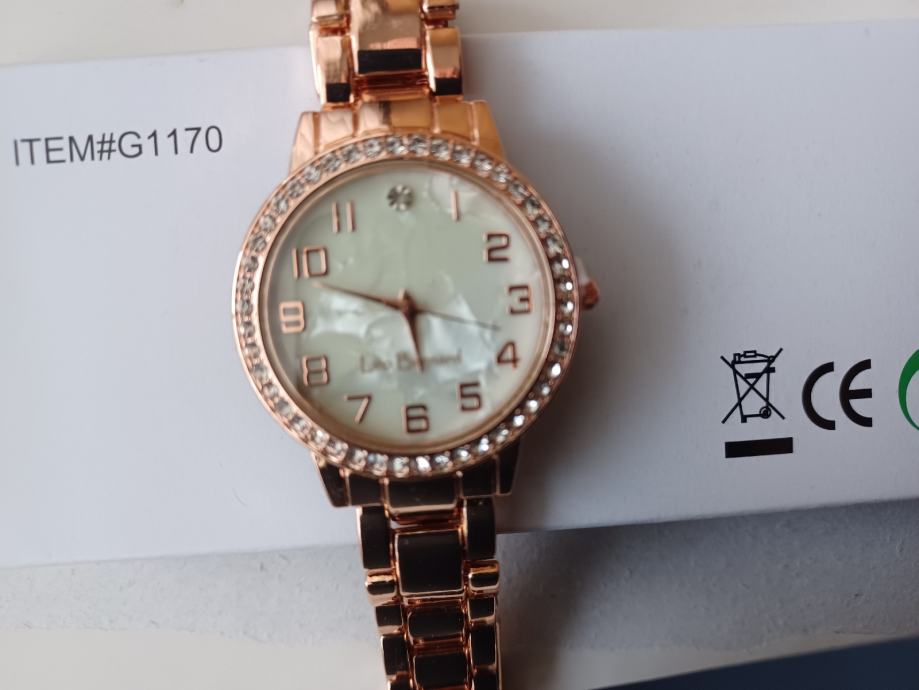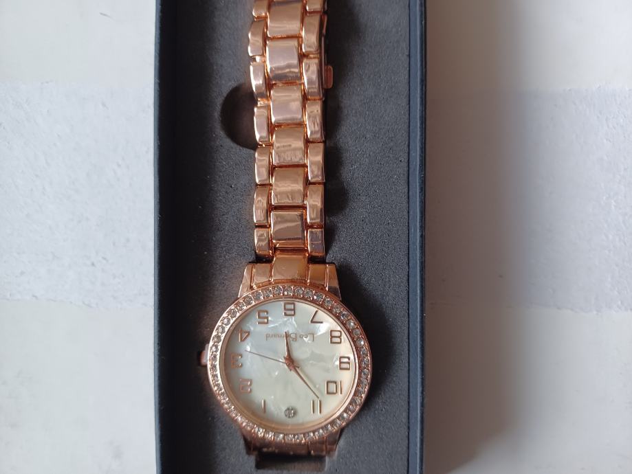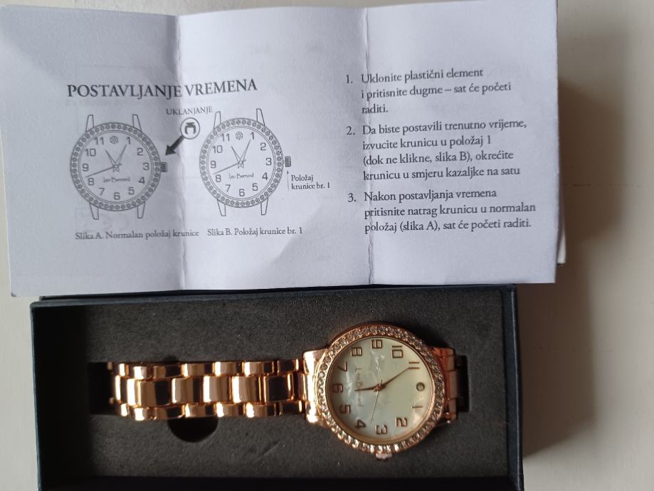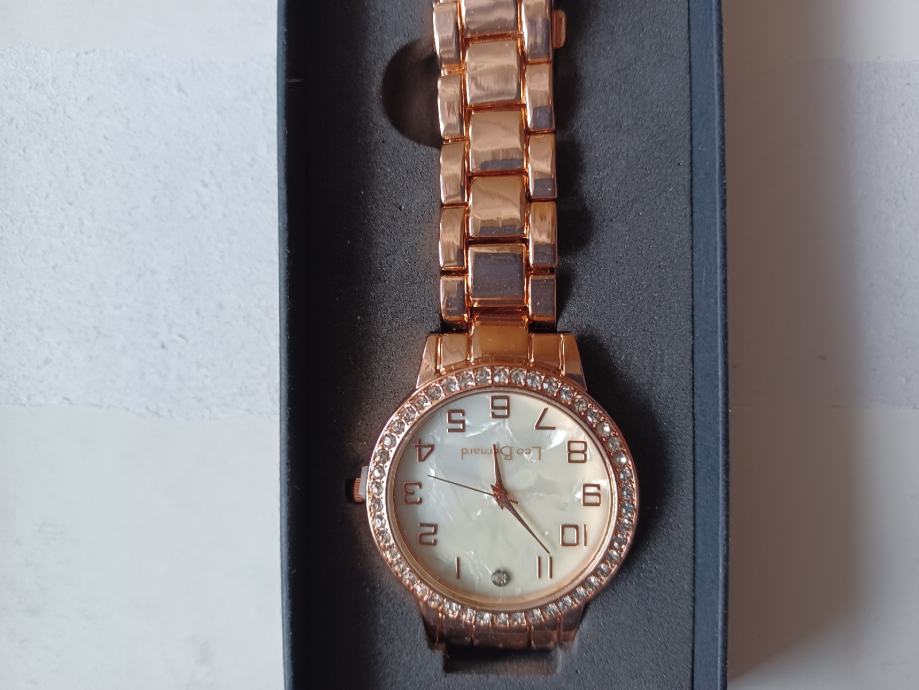 Sat Leo Bernard sa dijamantom na br.12, obrubljen sa 46 kristala. Ima dugmastu bateriju 377. Narukvica je izrađena od nehrđajućeg čelika.