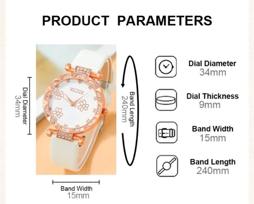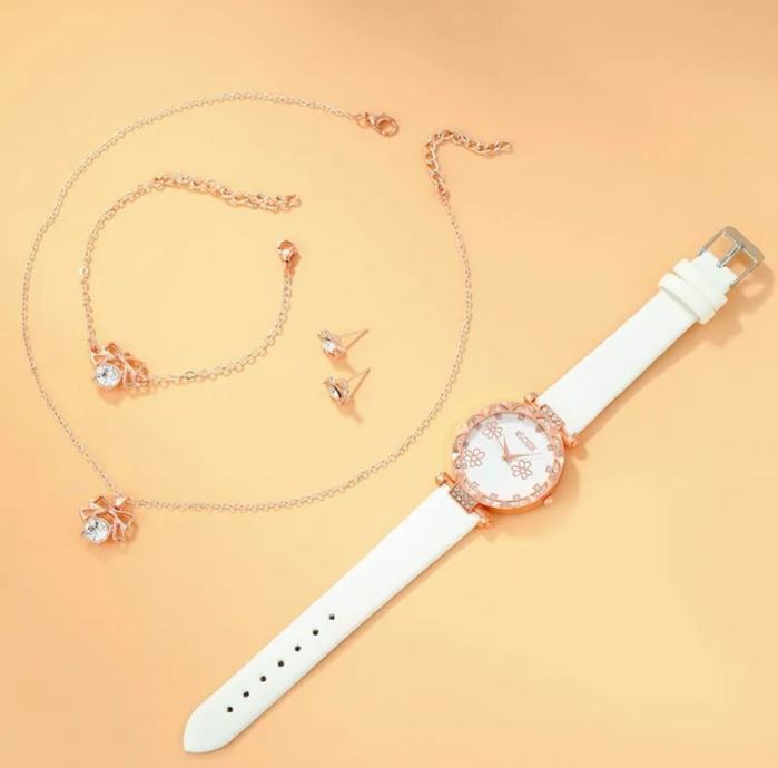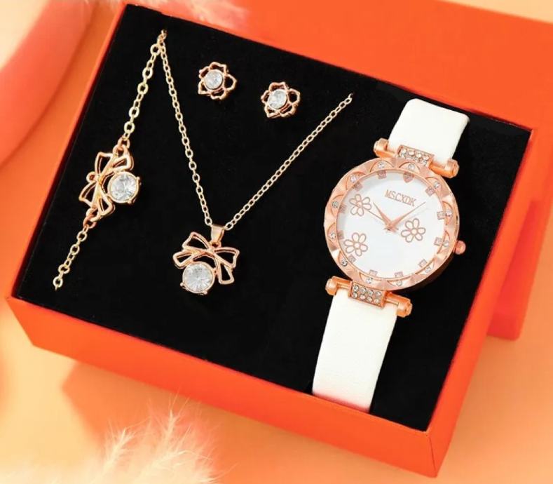 Ženski sat sa narukvicom, naušnicama i lančićem