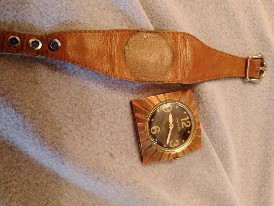 Ukrasni sat u kućištu 40*40mm s originalnim kožnim remenom .Sat je kompletan ali ne radi,nemirnica je ok ali nešto ga muči.Za igračku ili neku instalaciju.Šalem preporučeno uplatom na moj tekući račun+ troškovi poštarine