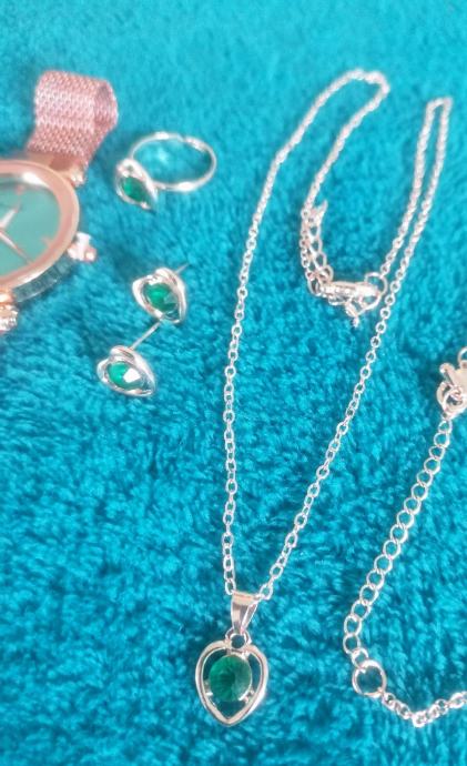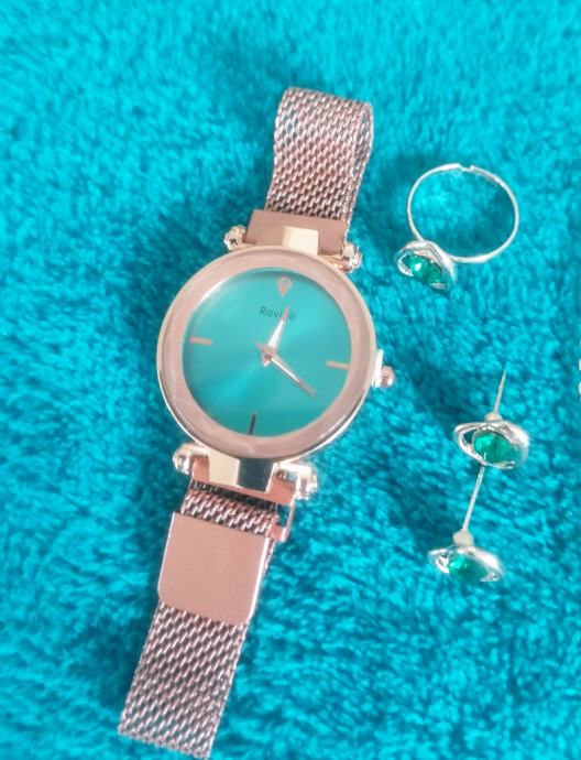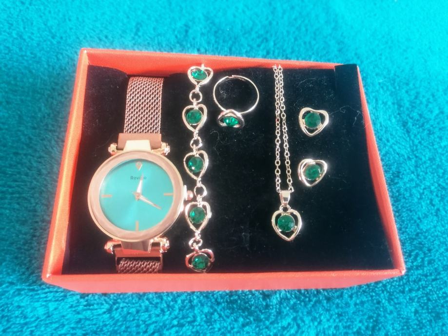 Set - ženski sat sa narukvicom, lančićem, naušnicama i prstenom