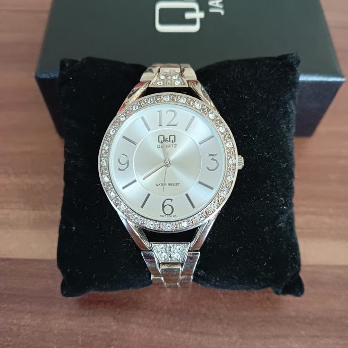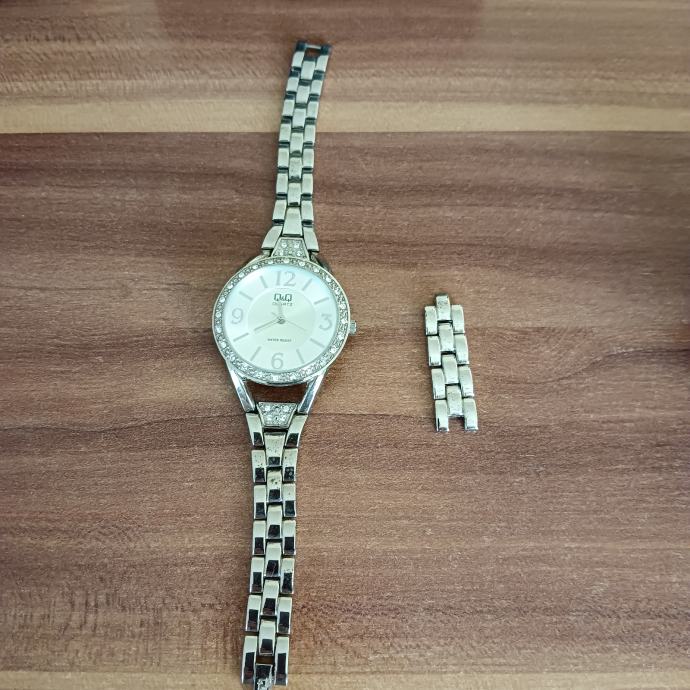 Prodajem ženski sat marke Q&Q sa srebrnom narukvicom i ukrasnim kristalima oko brojčanika. Elegantan dizajn s jasnim brojčanikom i water resist funkcijom čini ga savršenim modnim dodatkom za svaku priliku. Narukvica je skraćena na mjeru, ali je moguće ponovno vratiti dio. Sat nije nikada nošen, stoji u kutiji.