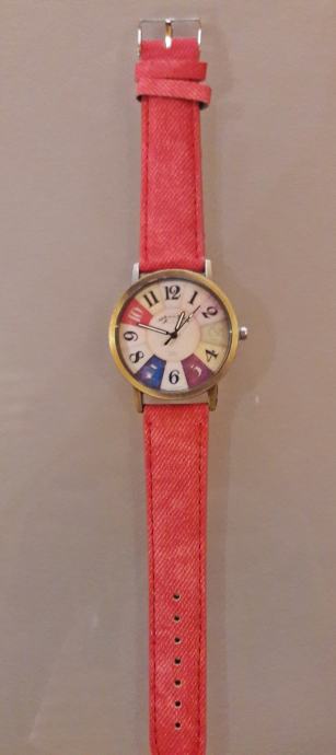 Prodajem nov, nenošen ženski sat. Kožna narukvica crvene boje. Nova baterija, zapakirano