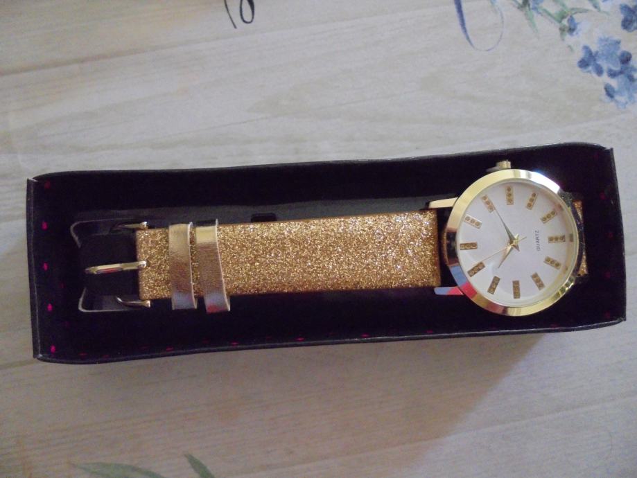 PRODAJEM PREKRASAN ŽENSKI AVON SAT ZLATNA BOJA, ZLATNI REMEN. POTPUNO NOV, NEKORIŠTEN. POGODNO I ZA POKLON.