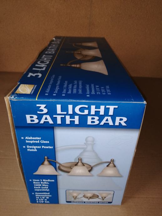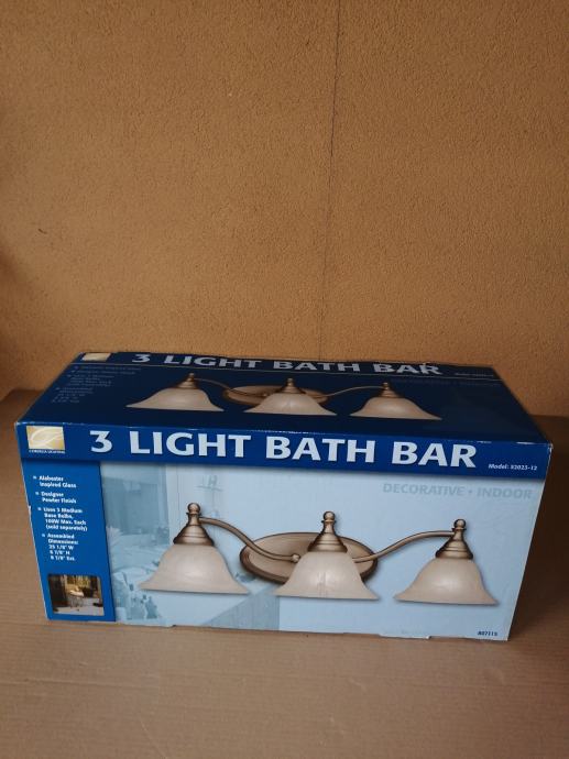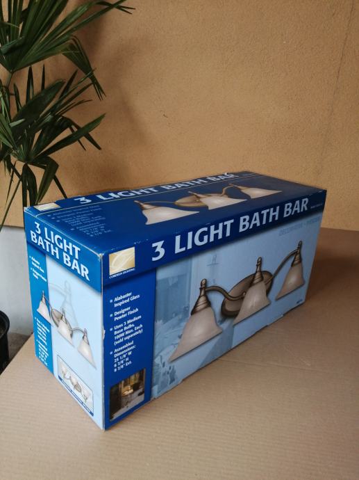 Kupaonska zidna svjetiljka sa metalnim kromiranim kučištem, te 3 staklena