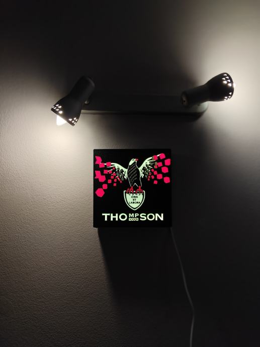 Led zidna lampa ,s motivom pjevača Tompsona povodom njegovog predstojećeg spektakla i mega koncerta u Zagrebu.