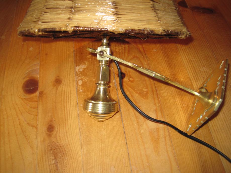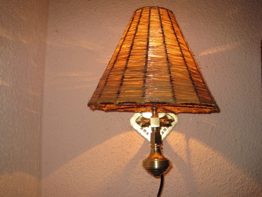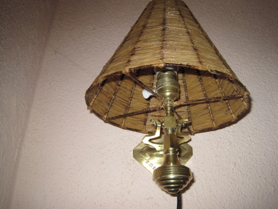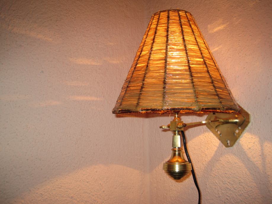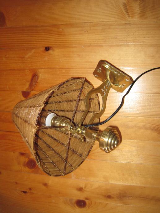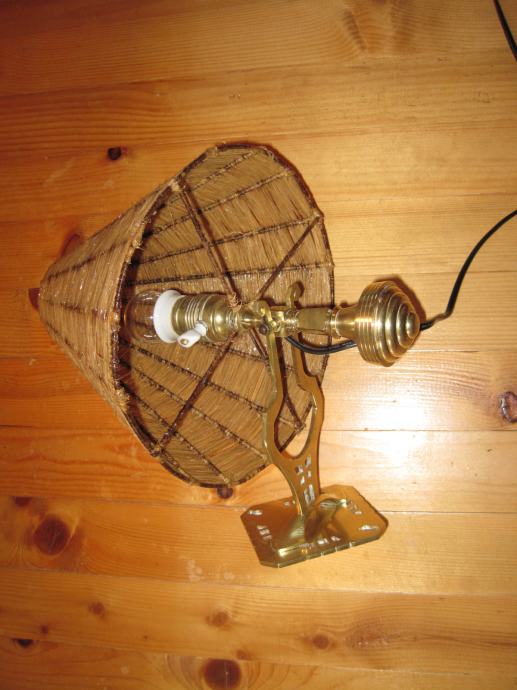Prodajem staru zidnu lampu izrađenu od mesinga ( tijelo ) i sjenila od trstike .. Za one koji žele nešto posebno ... Lampa je izrađena od kvalitetnih materijala kojih danas ne možete naći .. Tijelo je od mesinga sa visokim sjajem i ima obrtni zglob tako da ta lampa može biti i zidna i stolna . Sjenilo je od neke meni nepoznate trstike ... Jedina intervencija na toj lampi je bila da se sjenilo premaže bezbojnim lakom kako bi se učvrstilo i dobilo dodatan sjaj .. Palenje je malo neobično i nalazi se jako blizu žarulje .. Po meni nepraktično ali ja mogu na Vaš zahtijev ugraditi prekidač na kabal .. Također preporučavam korištenje žarulja koje ne isijavaju veliku toplinu ( LED žarulje ) !!