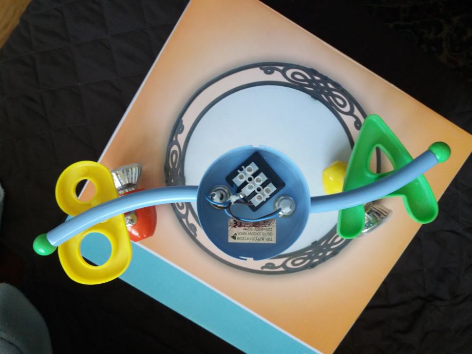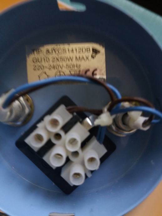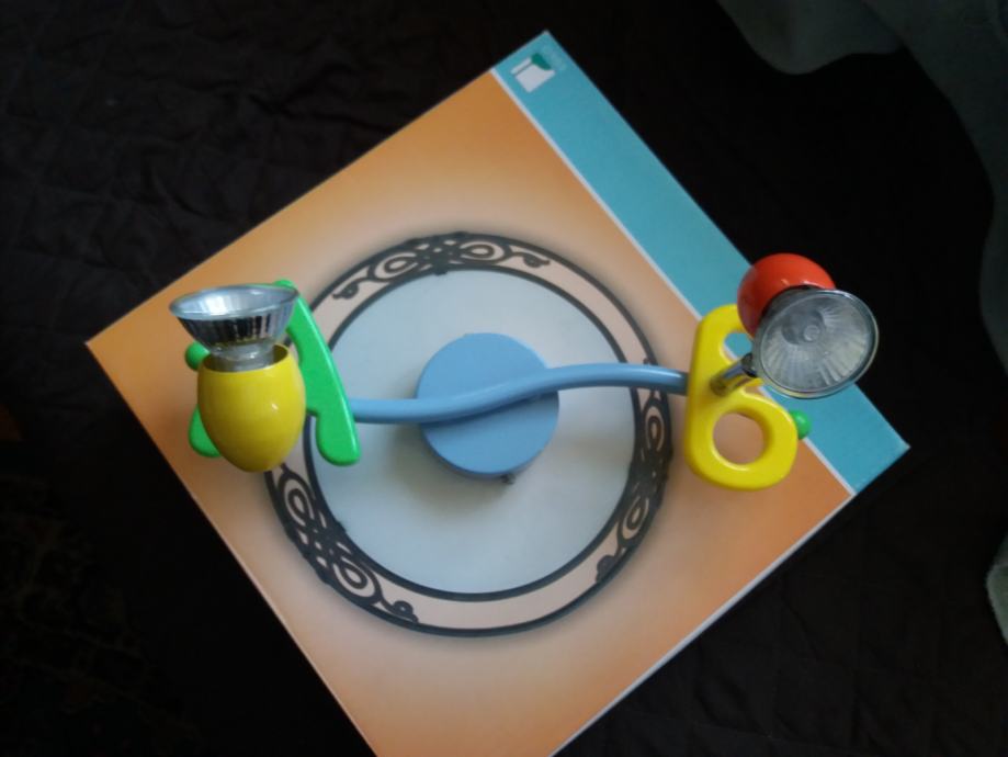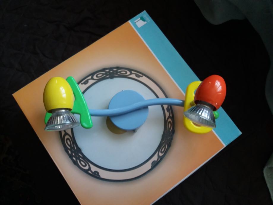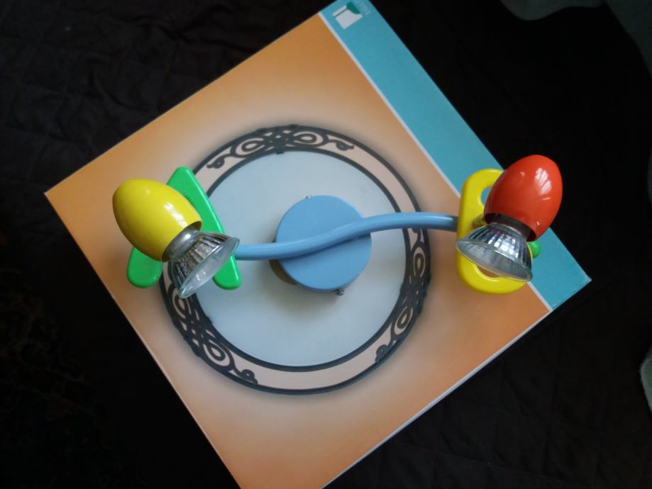 Rabljena dječja zidna lampa s dva halogena reflektora koji se mogu pomicati u željenom smjeru.