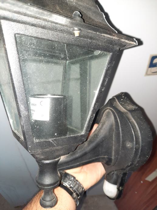 Vanjska zidna lampa sa senzorom, ispravna, crna, 10 EUR.