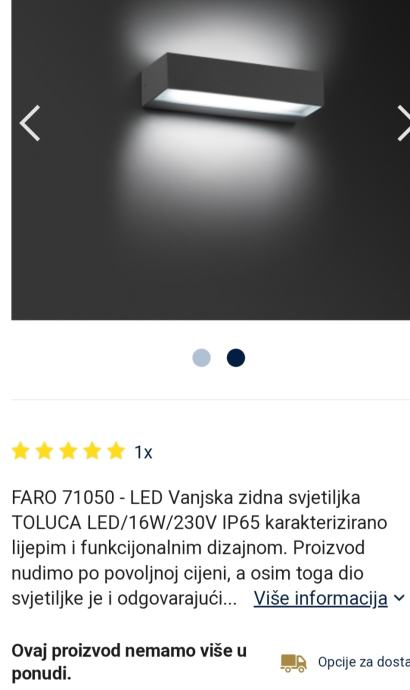 Prodajem dvije nove zidne kvalitetne lampe za vanjsku upotrebu, model faro 71050 crne 30e/kom, 2kom. više info u inbox