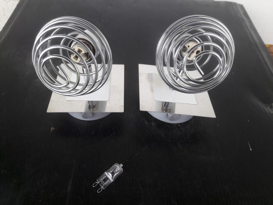 Rabljene zidne lampe u jako dobrom stanju, 2 Komada,inox, moze se stelati u svim smjerovima. G9 grlo za sijalice, sijalice nisu sa lampama. Cetvrtasti dio.je 10x10cm kao sto se vidi slici. Cijena je po komadu.