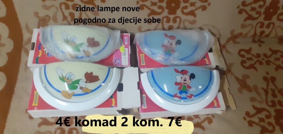 Prodajem nove zidne lampe s motivima Disney likovima, pogodne za dječje sobe. Cijena 4€ 1 komad ili 7€ dva komada. Može osobno preuzimanje ili slanje poštom ako smo daleko.