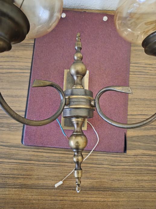 Mesing zidni lampa iz vremena kao iz prilozenog na slikama. Radi na potez špage. Dostupnost od 25.12