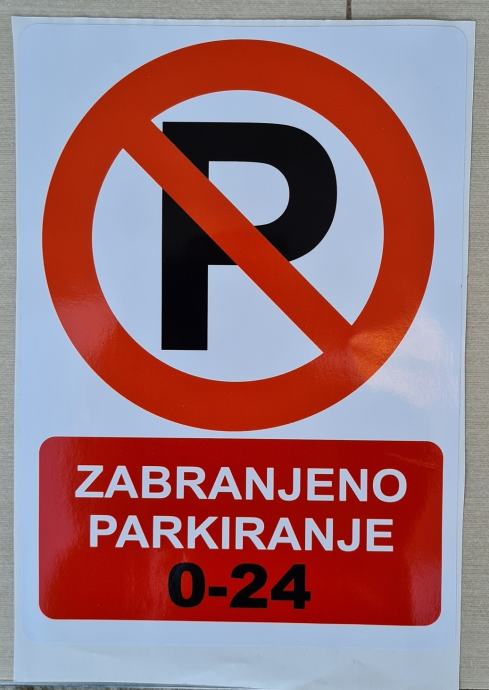 1. Naljepnica "(P-privatno) - ZABRANJENO PARKIRANJE 0-24" na prvoj slici ima dimenzije: 22cm x 30cm.