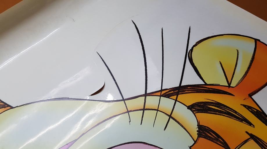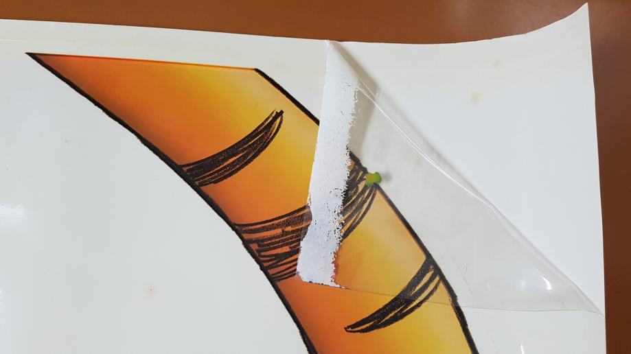 ** naljepnica je plastična, prozirna i na debljem masnom papiru, naljepnica nije ljepljiva nego se stavlja na prozorsko staklo (prozorsko staklo se prije postavljanja naljepnice mora navlažiti vodom) **