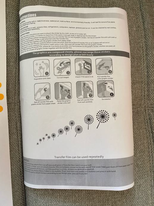 Prodajem naljepnice maslacka za zid ili keramicke plocice ili bilo koju drugu ravnu povrsinu zajedno sa folijom za prenosenje i uputstvima za nanosenje.