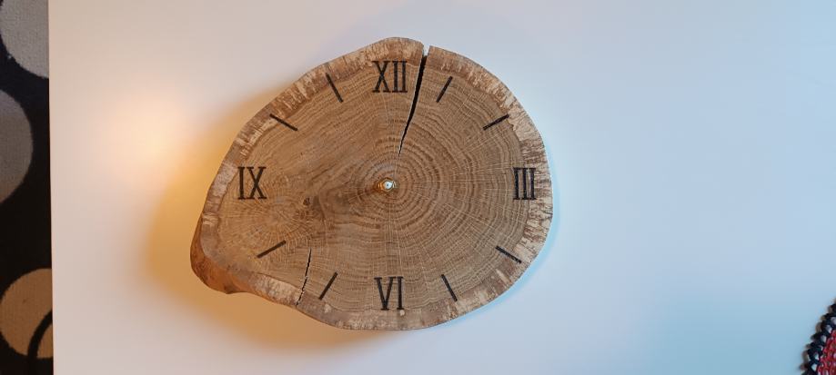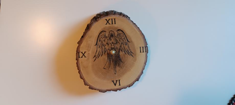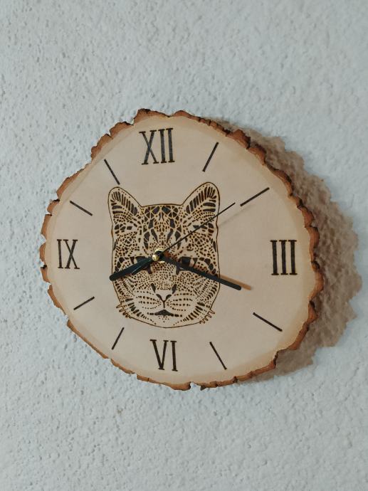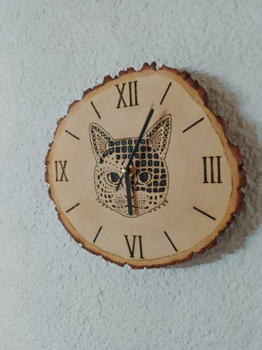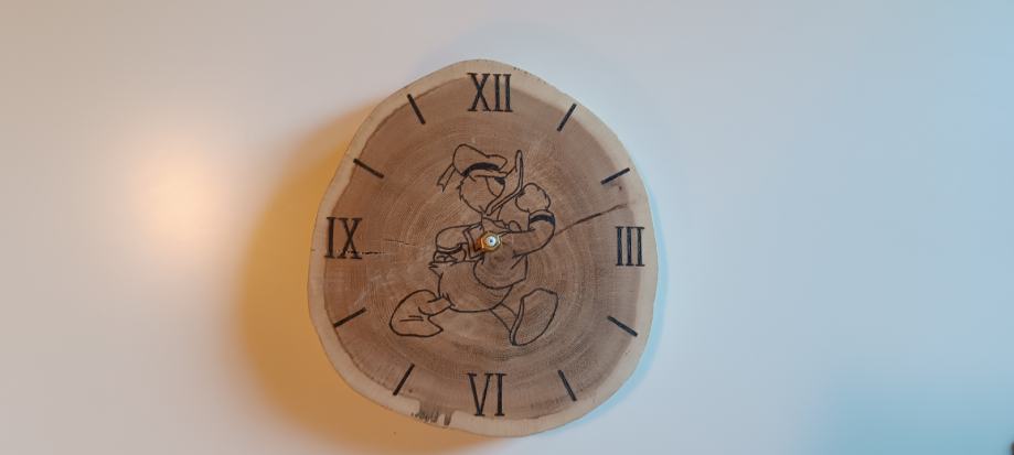 zidni sat od drva lipe, pirografija, ručni rad.
