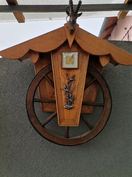 Vrlo lijepi drveni sat pogodan za terase i pecare mehanizam radi očišćen sve radi kao urica